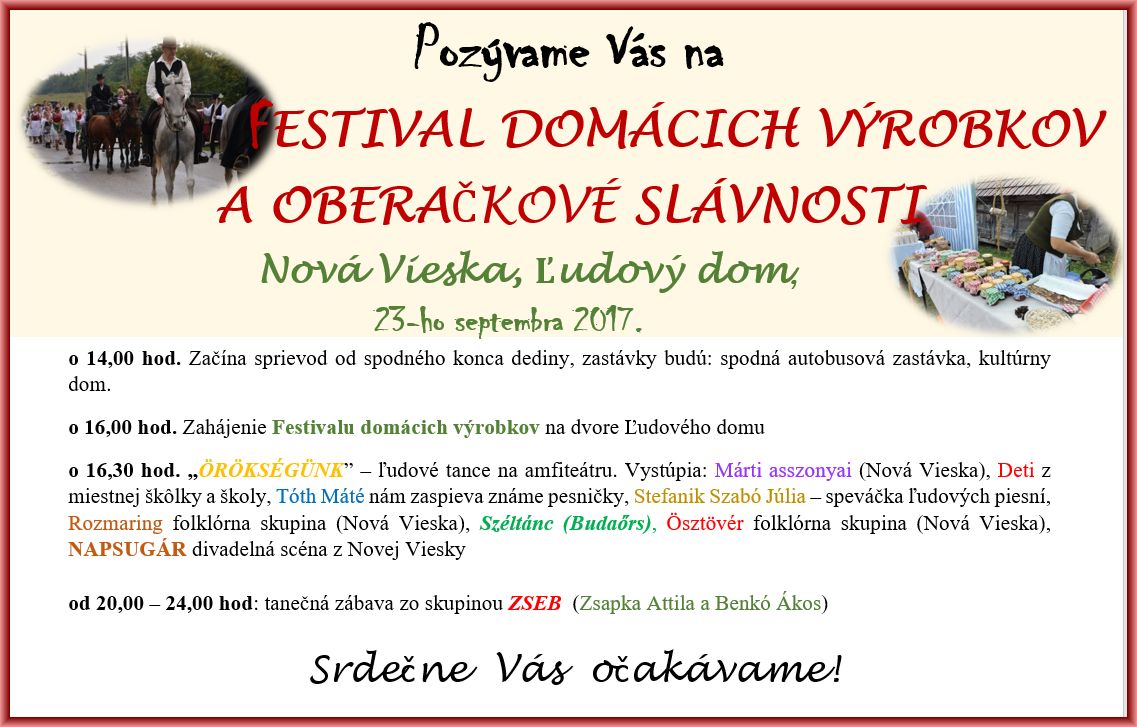 Pozvánka na Oberačkové slávnosti a Festival miestnych výrobkov